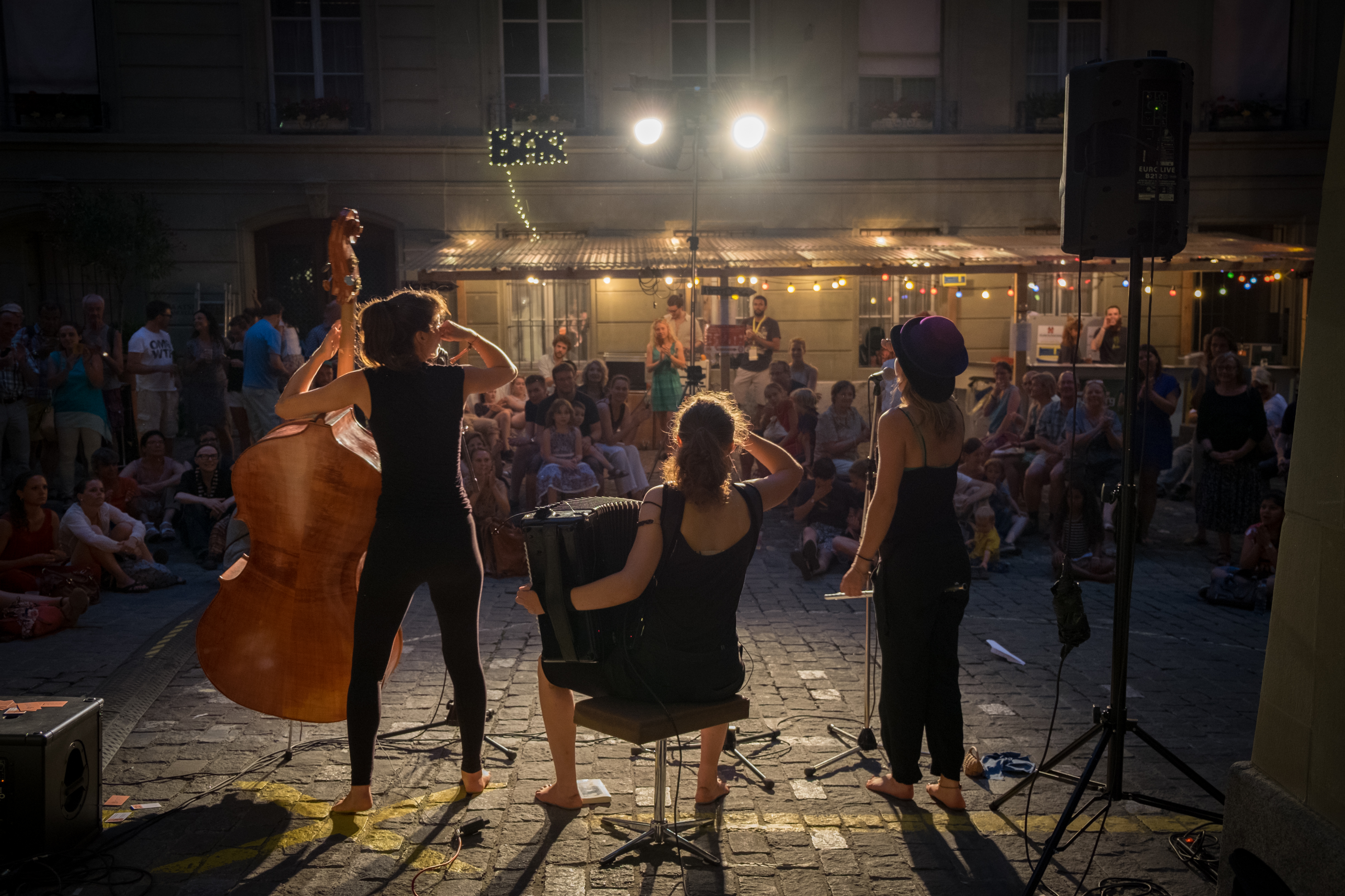 Da sind drei Frauen und ein grosses Buch. Und die Spur der Lilith, Adams erster Frau, halb Göttin, halb Dämonin. Und da sind Isabelle, Monika, Elfriede, Giovanna. Sie alle bespielen den Raum, huschend, wischend, schlurfend, stampfend, flüsternd. Und da ist Musik: Mal wird gerappt und geslappt, mal tauchen die Frauen ein im Sog der sich wiederholenden Melodie, mal bleibt nur eine brüchige, verzweifelte Stimme übrig. Die improvisativ erarbeiteten Arrangements überzeugen in Reduktion aufs Wesentliche und Direktheit der Aussage. Subtil kommen die Melodien alter europäischer Musiktraditionen in aktueller Form neu zum klingen. Schauerlich schön ist der Ton aus dem Querflötenkopf und man staunt, wie viele Register das Akkordeon ziehen kann. In den Liedern verraten Sefardische Frauen ihre Kochrezepte, eine selbstbewusste Rembetikosängerin tut, „was ihr gefällt“ und Finninnen sehnen sich ohne Ende. Die Musikerinnen durchforschen das Buch, um mehr über das Schicksal der Frauen im Untergrund zu erfahren. Der Text wird verarbeitet und bearbeitet. Wenn selbst dem grossen Buch die Worte fehlen, bleibt das unangenehme Geräusch einer zerreissenden Seite Papier.